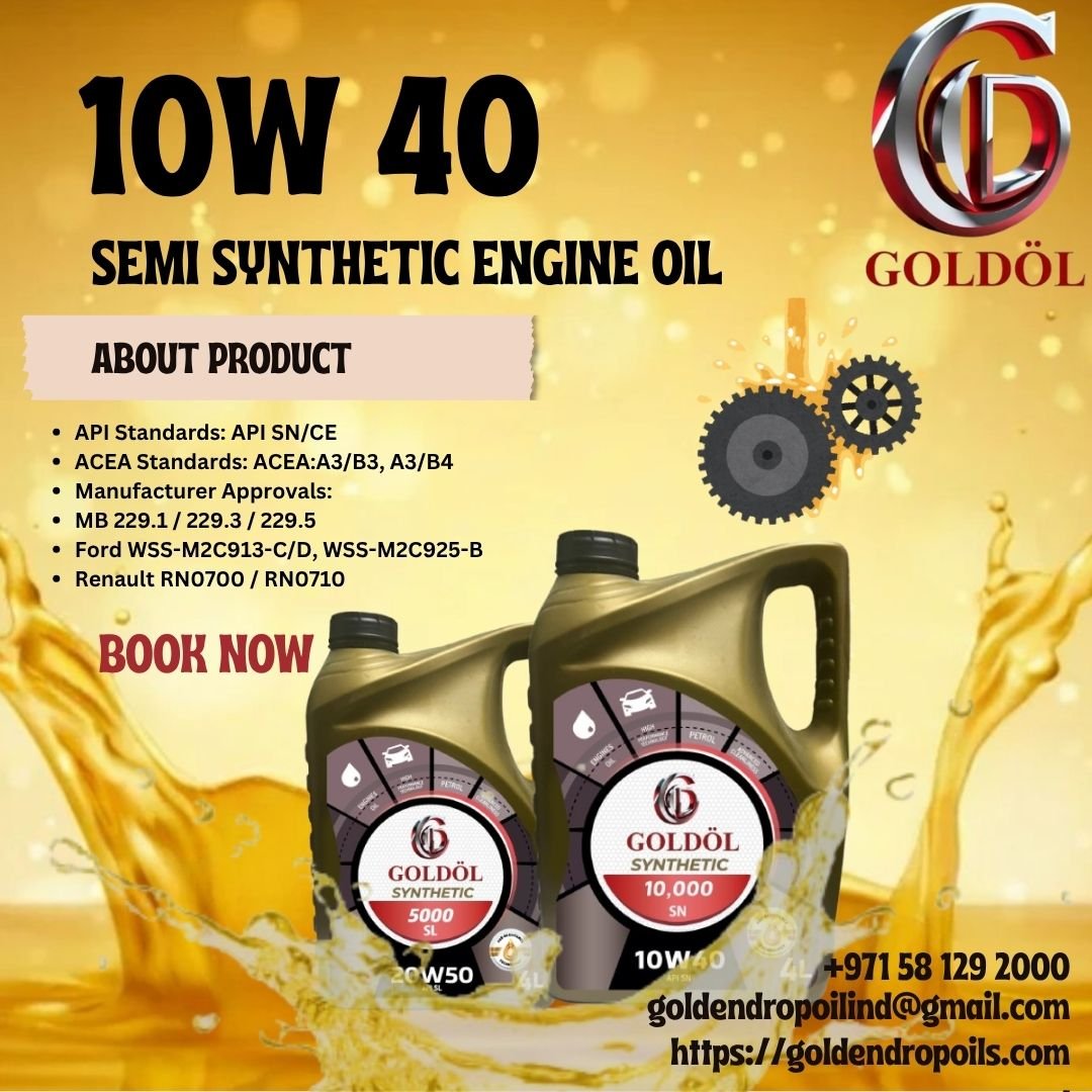Goldol Lubricants, a trusted UAE-based supplier, offers a wide range of high-performance lubricants and engine oils designed to enhance the efficiency and durability of both automotive and industrial engines. Operating from Sharjah and Dubai, we serve diverse clients across the UAE, including retailers, workshops, service centers, and industrial operations. Our products cater to the extreme climate conditions of the region, providing superior wear resistance, fuel economy, and protection against engine stress. With over 28 years of experience, Goldol Lubricants specializes in synthetic, semi-synthetic, and mineral-based oils suitable for gasoline and diesel engines. Our top-selling products include the GOLDOL 5W30, 10W40, and 20W50 oils, known for their powerful performance and reliability. Whether for high-performance vehicles or heavy-duty applications, Goldol Lubricants ensures extended engine life and enhanced driving experience. Count on us for premium oil solutions, competitive pricing, and prompt delivery.