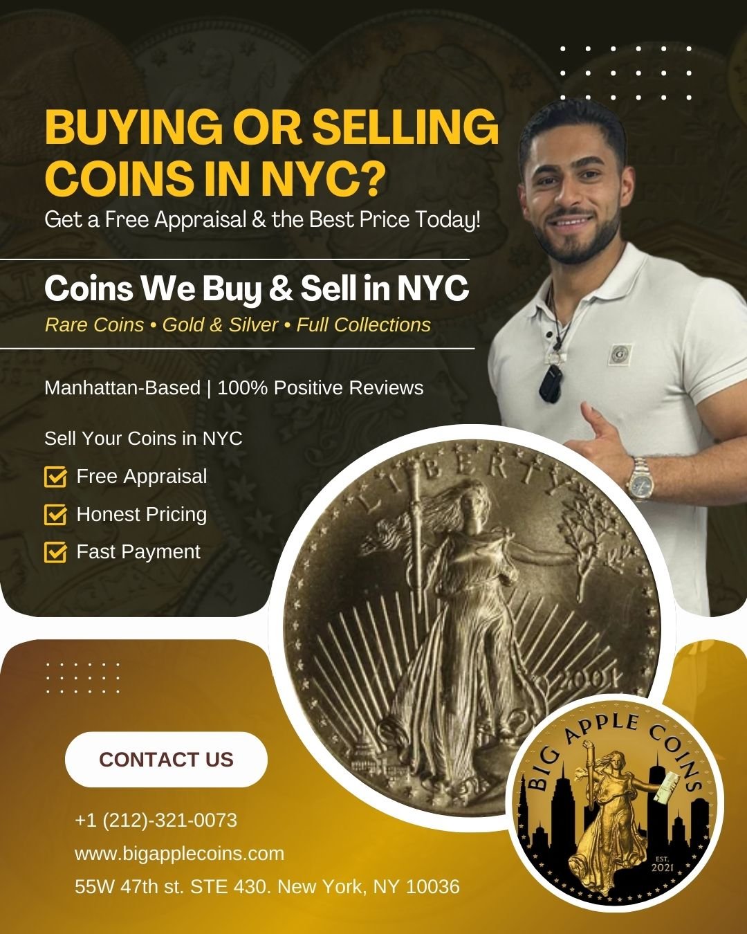 Buy and sell rare coins and bullion in New York at Big Apple Coins. Trusted coin dealer in Manhattan, NYC. Top NY coin shop.
