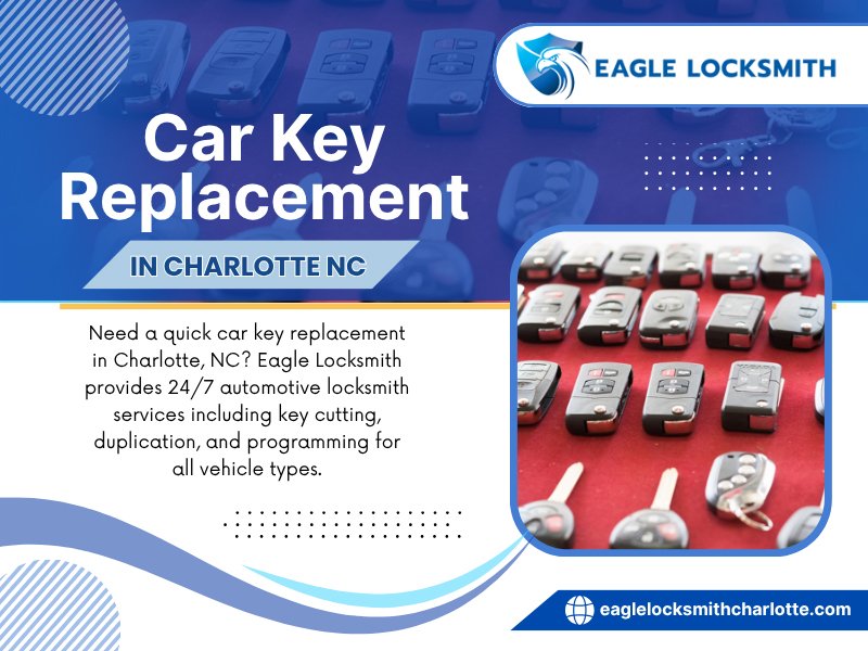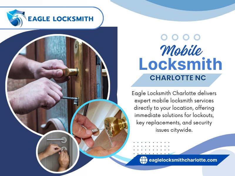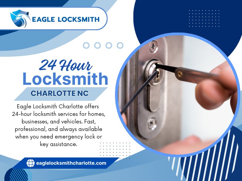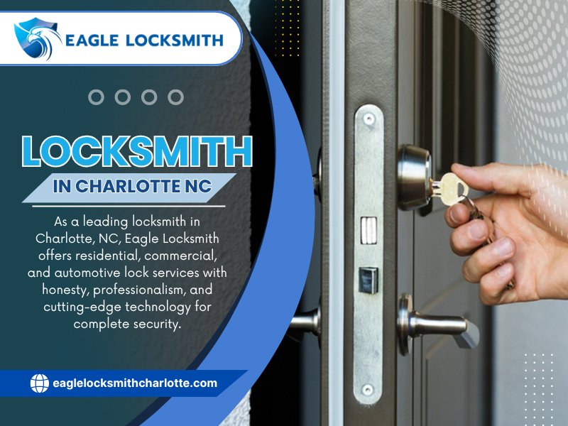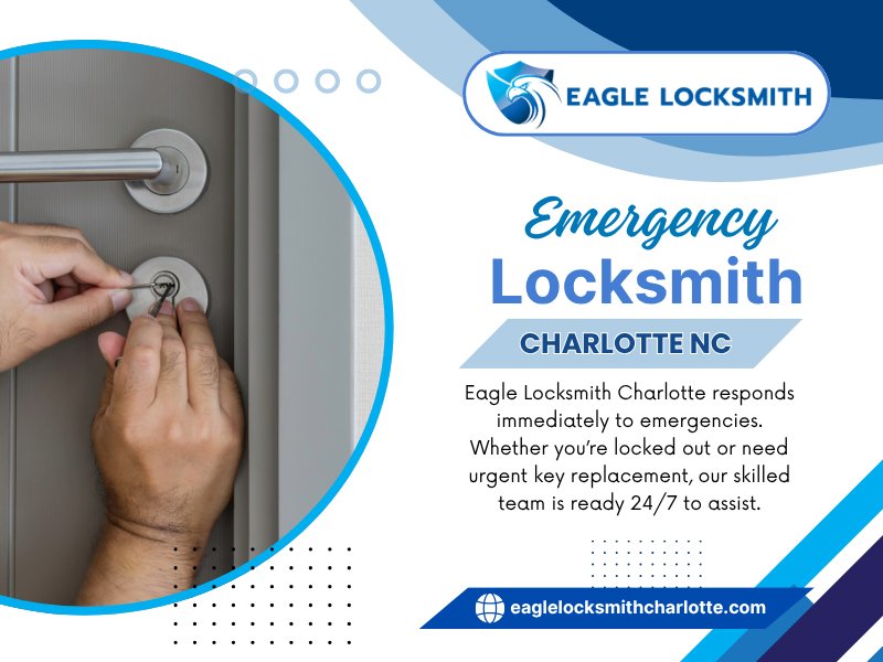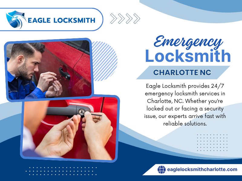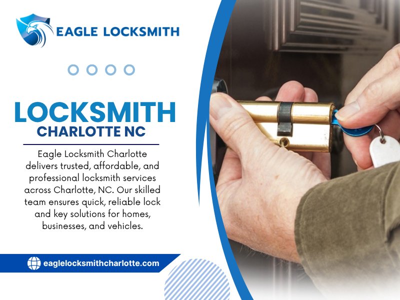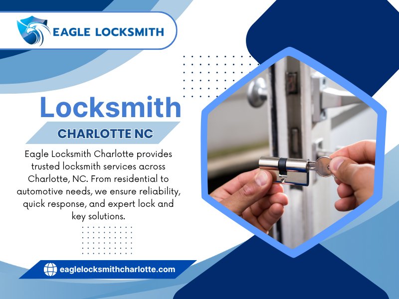 Eagle Locksmith is your trusted local locksmith in Charlotte, NC, providing fast, professional, and affordable mobile locksmith services. We specialize in car key replacement, lockouts, rekeying, key duplication, and smart lock installation for homes, businesses, and vehicles. Our licensed technicians offer 24/7 emergency service, quick response times, and honest pricing. Count on Eagle Locksmith Charlotte for dependable security solutions when you need them most.