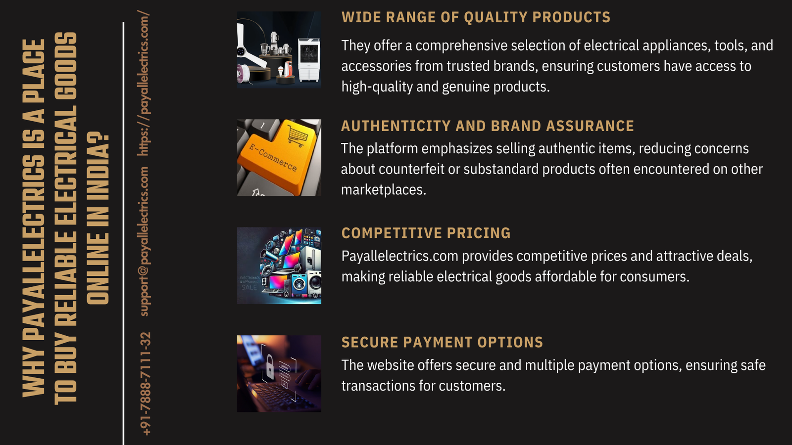 Get Affordable & Discounted Electrical Goods Online Today Looking for quality electrical products at unbeatable prices? We offer a wide range of affordable and discounted electrical goods online, incluSSding switches, wires, and more. Whether you're a homeowner, contractor, or business owner, you'll find the right products at prices that fit your budget.Shop with confidence, enjoy fast delivery, and get top-notch customer service. Upgrade your electrical setup without overspending. Contact us today Email: support@payallelectrics.com Phone: 7888-7111-32
