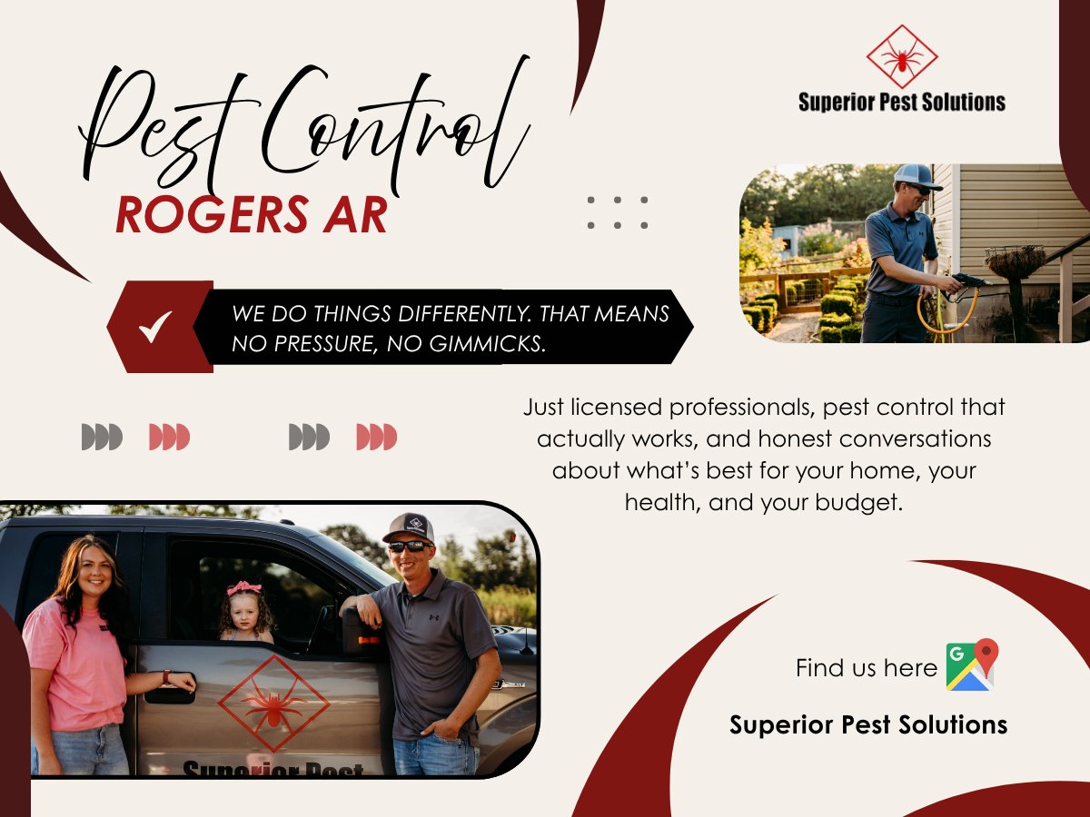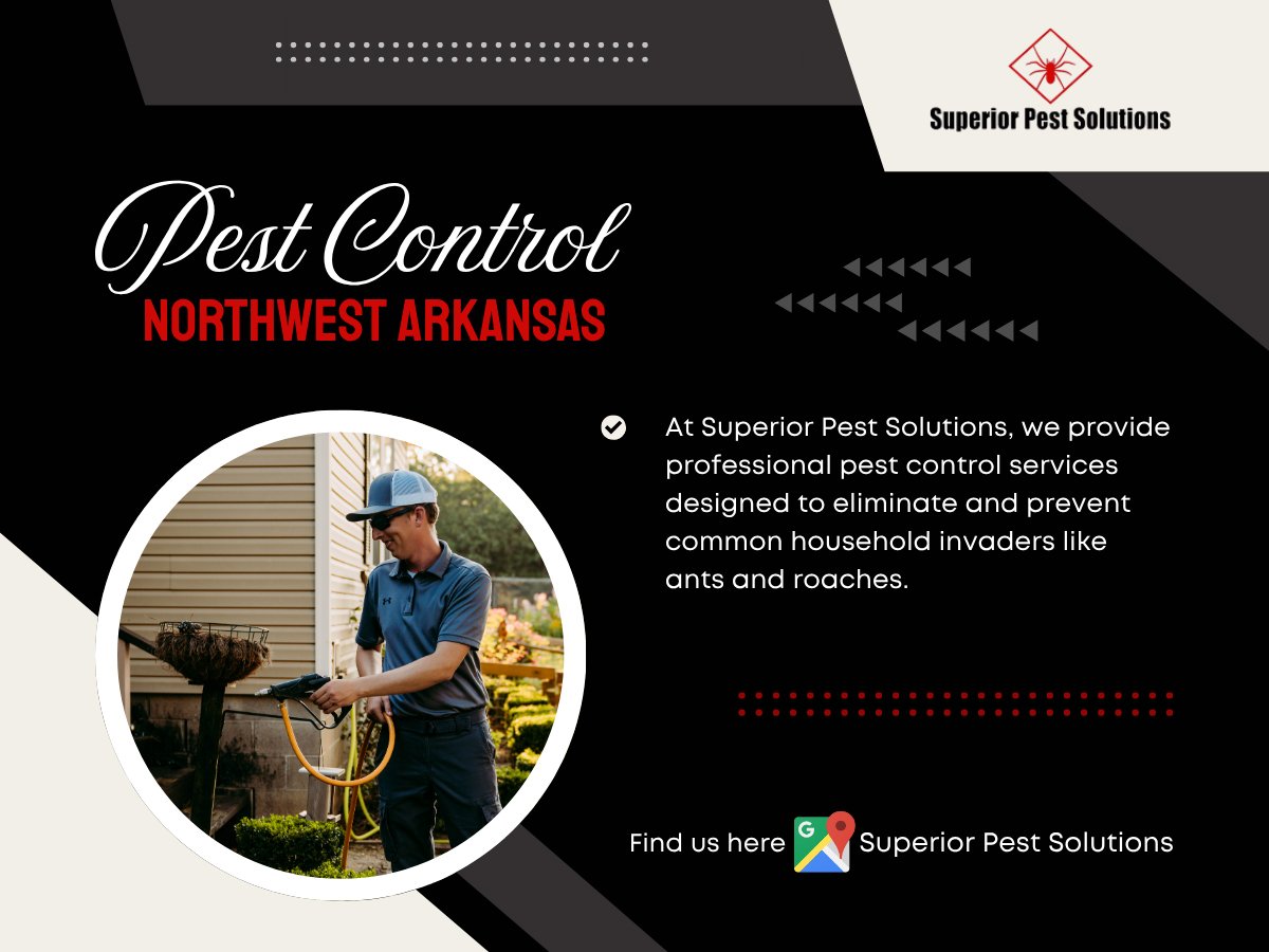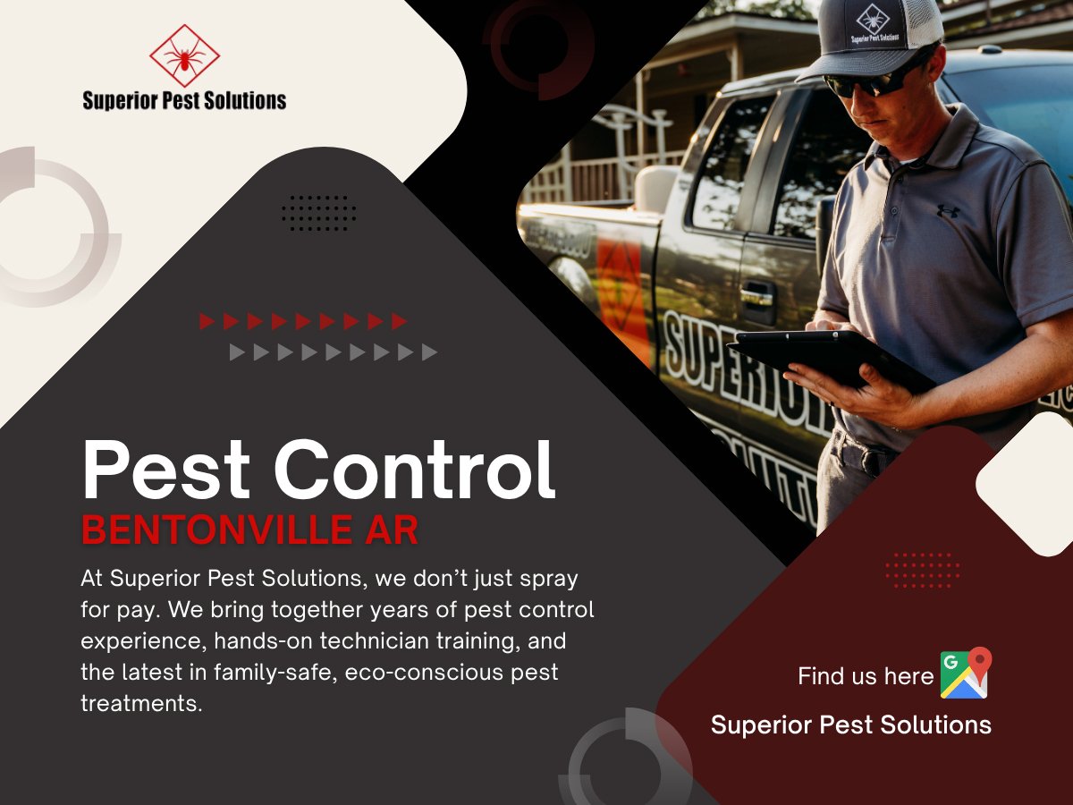 Superior Pest Solutions NWA is a service-member-owned pest control company protecting homes and businesses across Fayetteville, Bentonville, Rogers, and all of Northwest Arkansas. We provide fast, reliable pest control for ants, spiders, termites, mosquitoes, and rodents — with safe, effective treatments and integrity. Known for our community-first approach, we’re #NotJustAnotherPestControlCompany — we’re your trusted local experts in not only keeping pests out for good, but also giving back to our community through good deeds and superior service.