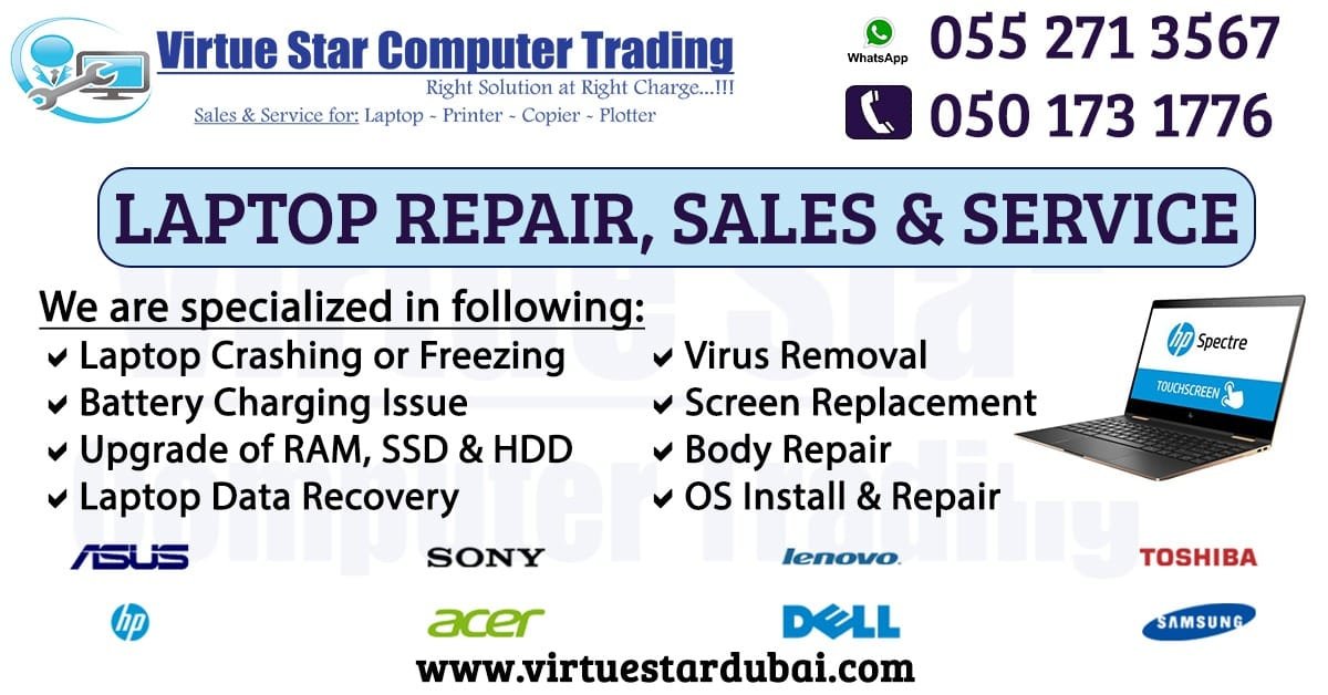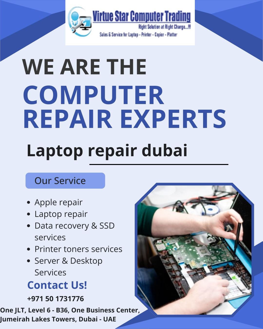 Virtue Star Computer Trading is a trusted IT service provider based in Dubai, UAE, with over 18 years of experience in the industry. Established in 2009, we specialize in high-quality computer and laptop repair, data recovery, virus removal, and IT product supply. Located in Bur Dubai, we proudly serve all of Dubai, offering a comprehensive range of services including printer/plotter/copier repair, server maintenance, and wireless network setup. Our team of highly skilled technicians is dedicated to delivering fast, reliable, and cost-effective solutions. Most repairs are completed within 24-48 hours, with same-day service available. We are committed to providing excellent customer service, with free estimates, competitive pricing, and a focus on long-term relationships built on trust. Whether you're a busy professional or a large business, Virtue Star ensures your IT needs are met with efficiency, professionalism, and a customer-first approach.