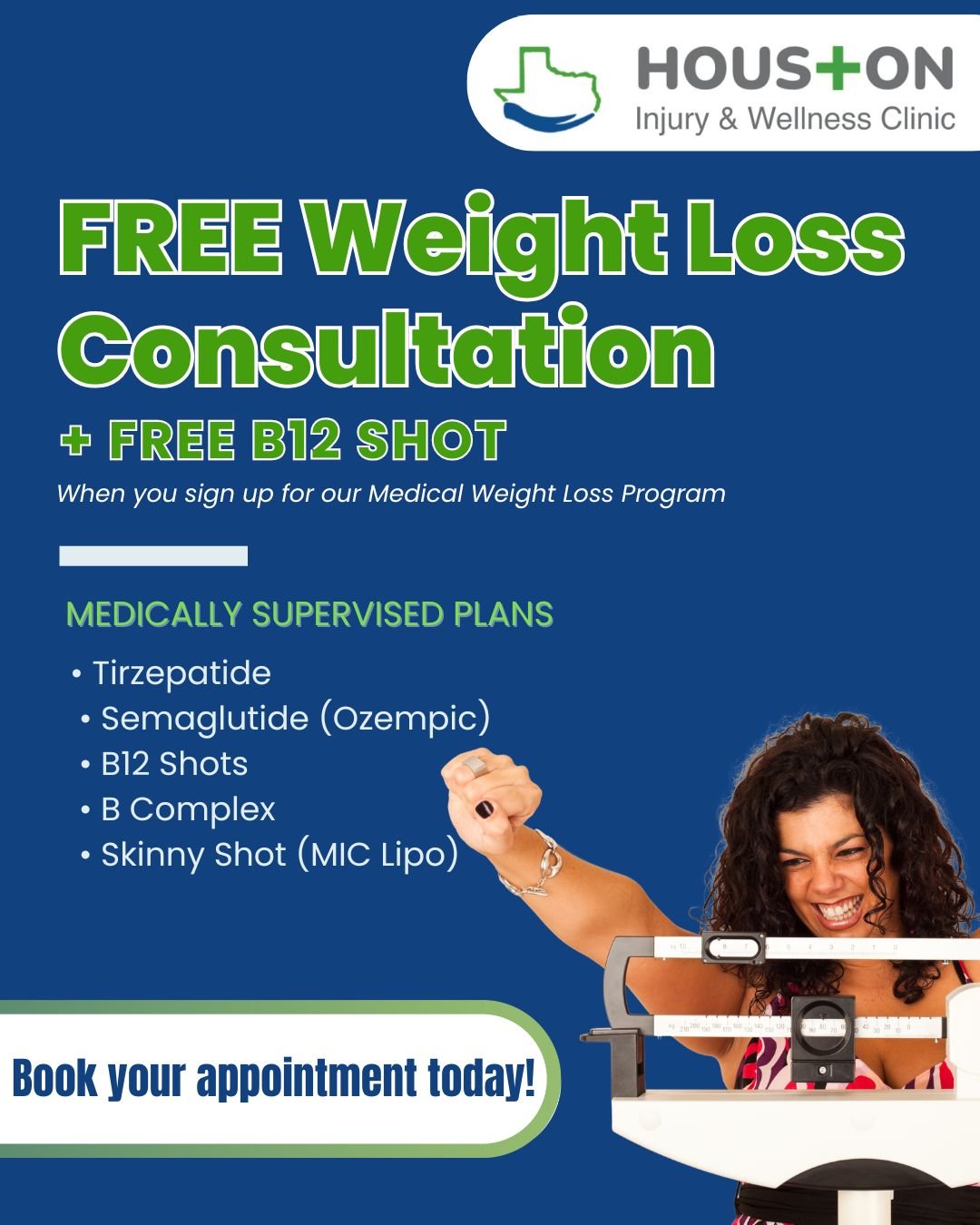 At Houston Injury and Wellness Clinic, we offer comprehensive medical weight loss treatments designed to help you achieve sustainable results. Whether you’re looking to lose a few pounds or need a medically supervised plan, our expert team provides personalized guidance to help you shed excess weight, boost energy, and improve overall health.